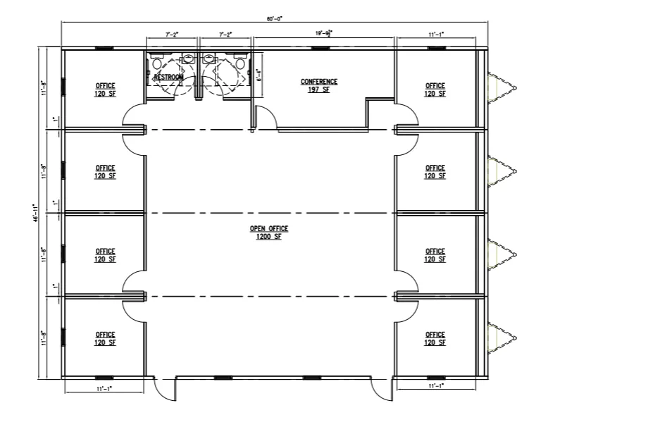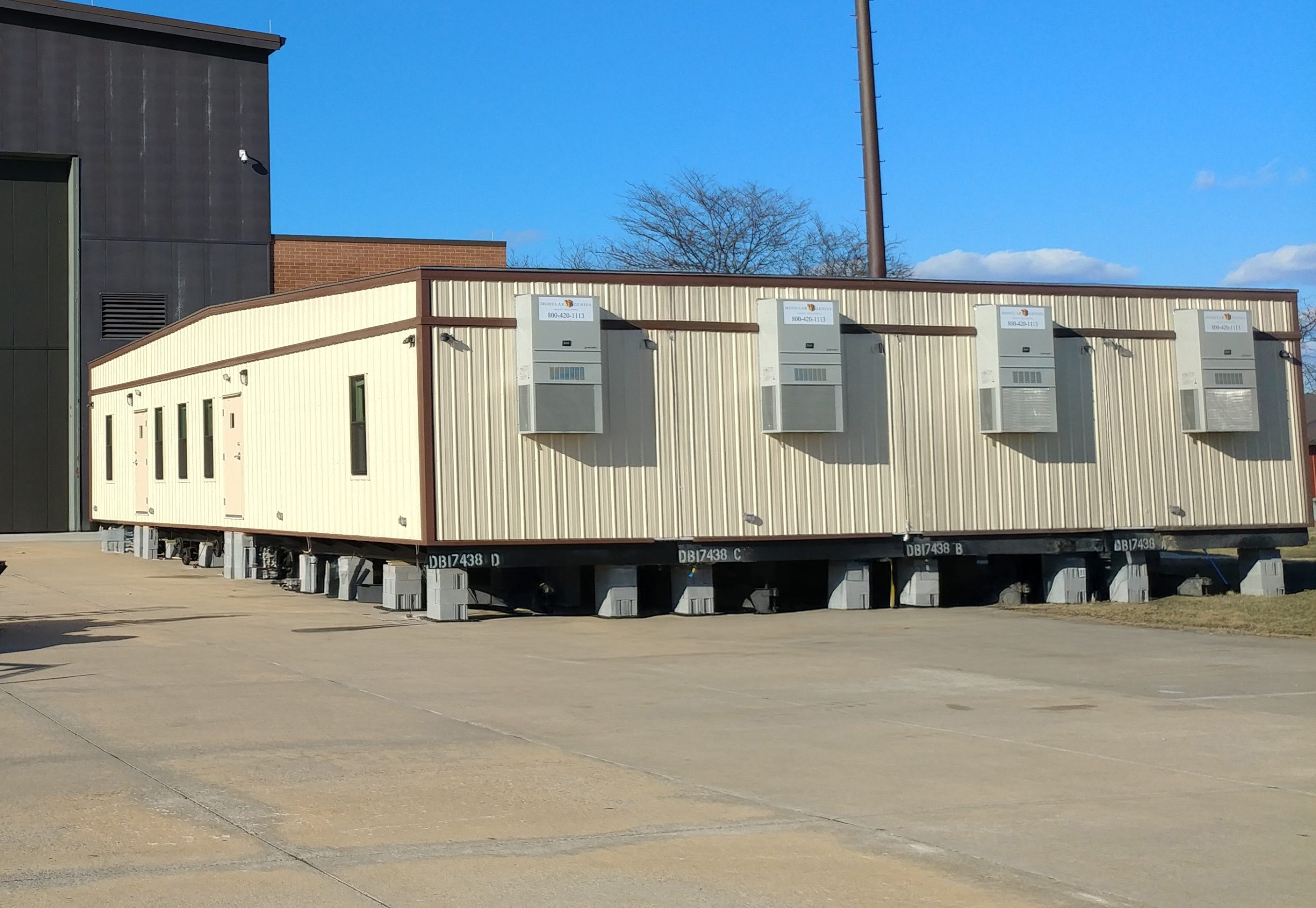 This 48' x 60' modular office provides 2,880 sq. ft. of flexible workspace in a 2018 build. Featuring factory-installed HVAC and electrical systems, durable Smart Panel siding, an EPDM roof, vinyl-covered gypsum walls, T-grid ceilings, and VCT flooring, this relocatable unit is well suited for office or administrative use with minimal site work required.